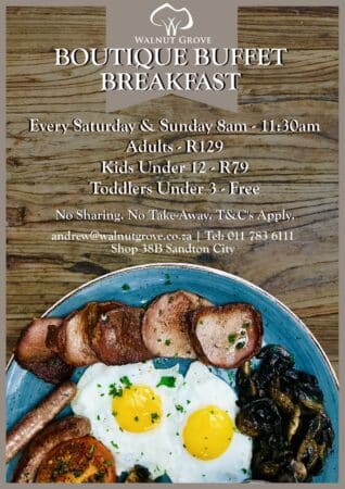 Walnut Grove is a new and exciting boutique experience, bringing seasonal produce and quality ingredients to diners under one of Africa’s largest chandeliers; a towering walnut tree flowing with over 10,000 reclaimed and antique crystals. The atmosphere is unique and interactive. Enjoy a cappuccino and breakfast in the vibrant pantry area, or in our more secluded library section or sip a cocktail in the bar area. This is a 360° dining experience grounded in family tradition and heritage.