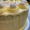 Granadilla infused sponge with a passion fruit butter cream cheese icing, drizzled in passion fruit.